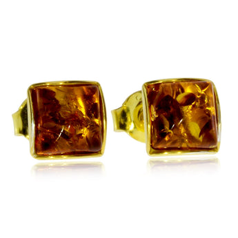 Stříbrné pozlacené náušnice s jantarem čtvercového tvaru