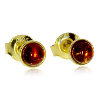 Maličké náušnice ve stříbře se žlutým pozlacením jsou ozdobené drobnou polovinou kuličky baltského jantaru, která je zasazena do jemné hladké obruby. Jantar má barvu koňaku a je pěkně vyleštěný. Průměr náušnice je necelá polovina centimetru - patří tedy k velmi malým pecičkám.