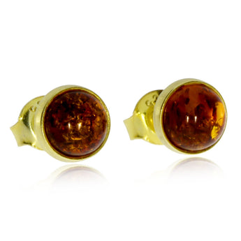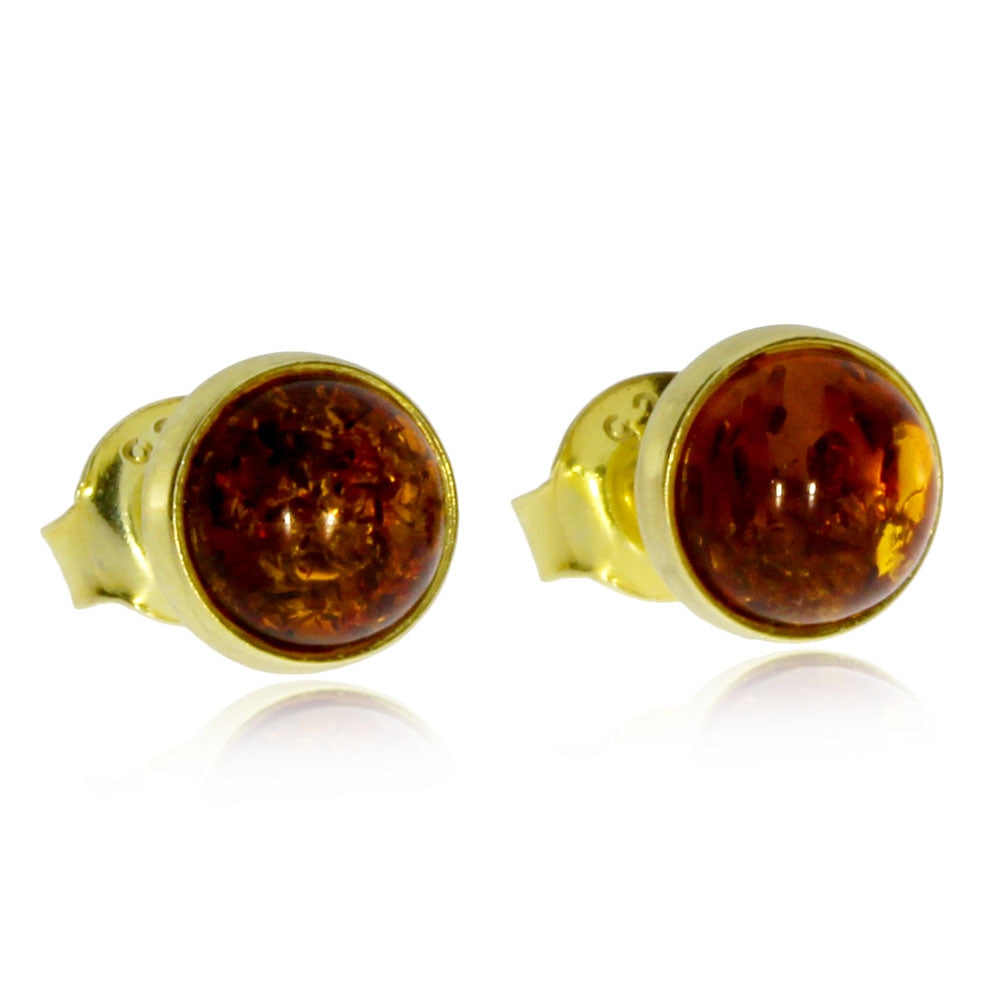 Stříbrné pozlacené náušnice s jantarem - Malé kulaté pecky