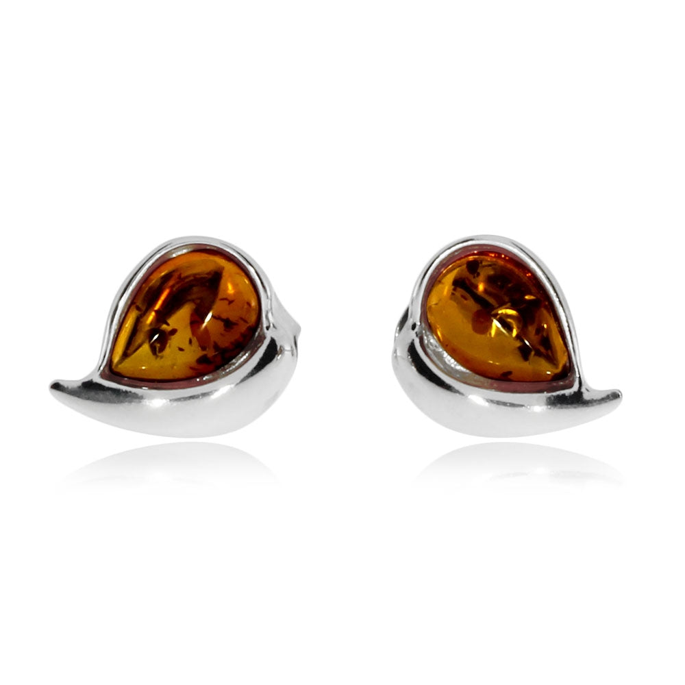 Stříbrné náušnice - Pecky s jantarem tvaru kapky