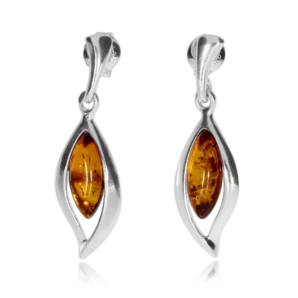 Stříbrné visací náušnice - Jantar ve tvaru markýzy