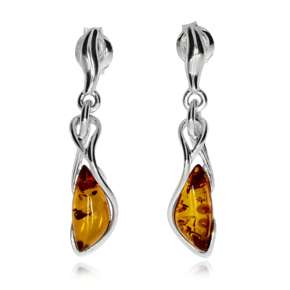 Stříbrné náušnice - Jantar v nepravidelném závěsu