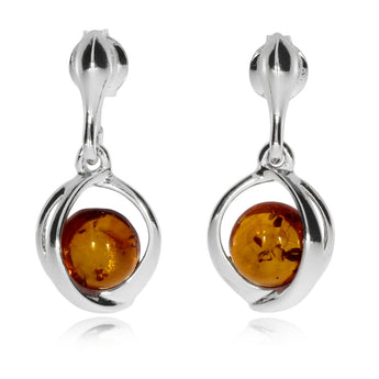 Dámské visací náušnice jsou vyrobné ze stříbra o ryzosti 925/1000 s povrchovou úpravou lesklého rhodia. Kulaté nepravidelné závěsy jsou pohyblivě připojené a zdobí je kulaté jantary tmavší medové barvy. Drobné náušnice jsou vhodné pro denní nošení, na noc a mytí je doporučujem snímat, aby nedošlo k poškození.