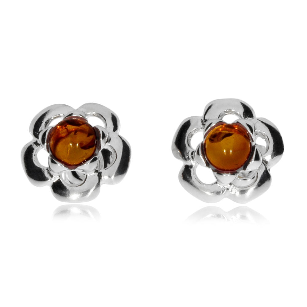 Stříbrné náušnice pecky - Jantarová kytička