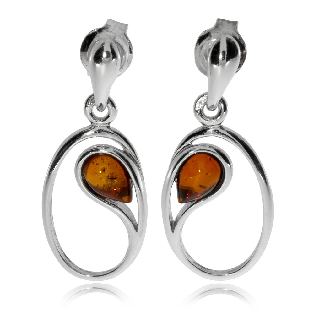 Dámské stříbrné náušnice zdobí závěs ve tvaru oválu, který je ozdoben drobnou jantarovou kapkou. Vzdušný design náušnic je vhodný pro denní nošení. Náušnice jsou vyrobené ze stříbra o ryzosti 925/1000 s rhodiovaným povrchem, který neoxiduje a velmi snadno se čistí suchým flanelem. Šperk je třeba odkládat na spaní a mytí, aby nedošlo k jeho poškození.