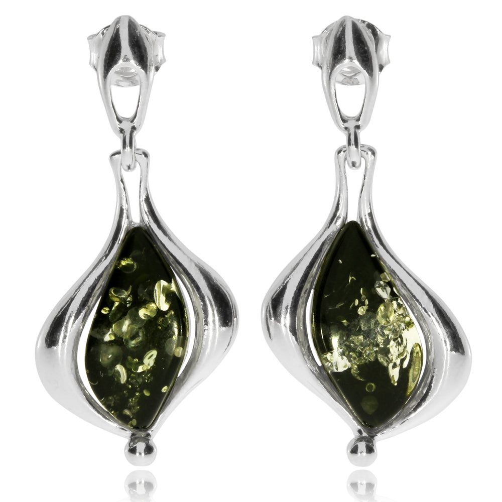 Stříbrné náušnice s výrazným zeleným jantarem