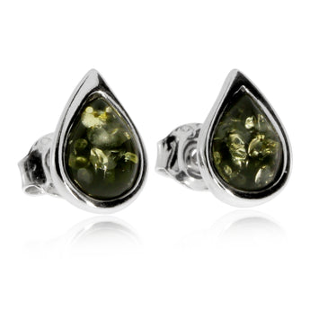 Stříbrné náušnice - Drobné kapky se zeleným jantarem
