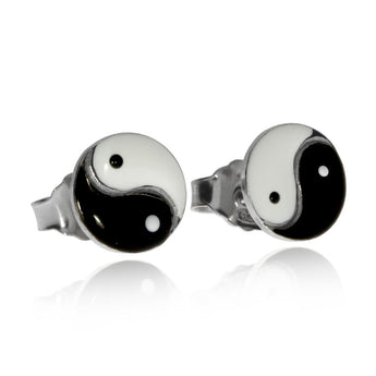 Stříbrné rhodiované náušnice s motivem jin jang