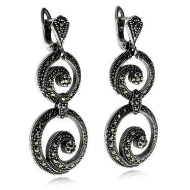Stříbrné náušnice s markazity ve tvaru lístků v povrchové úpravě starostříbro 1.396,69 Kč /Včetně DPH.Vyprodáno
