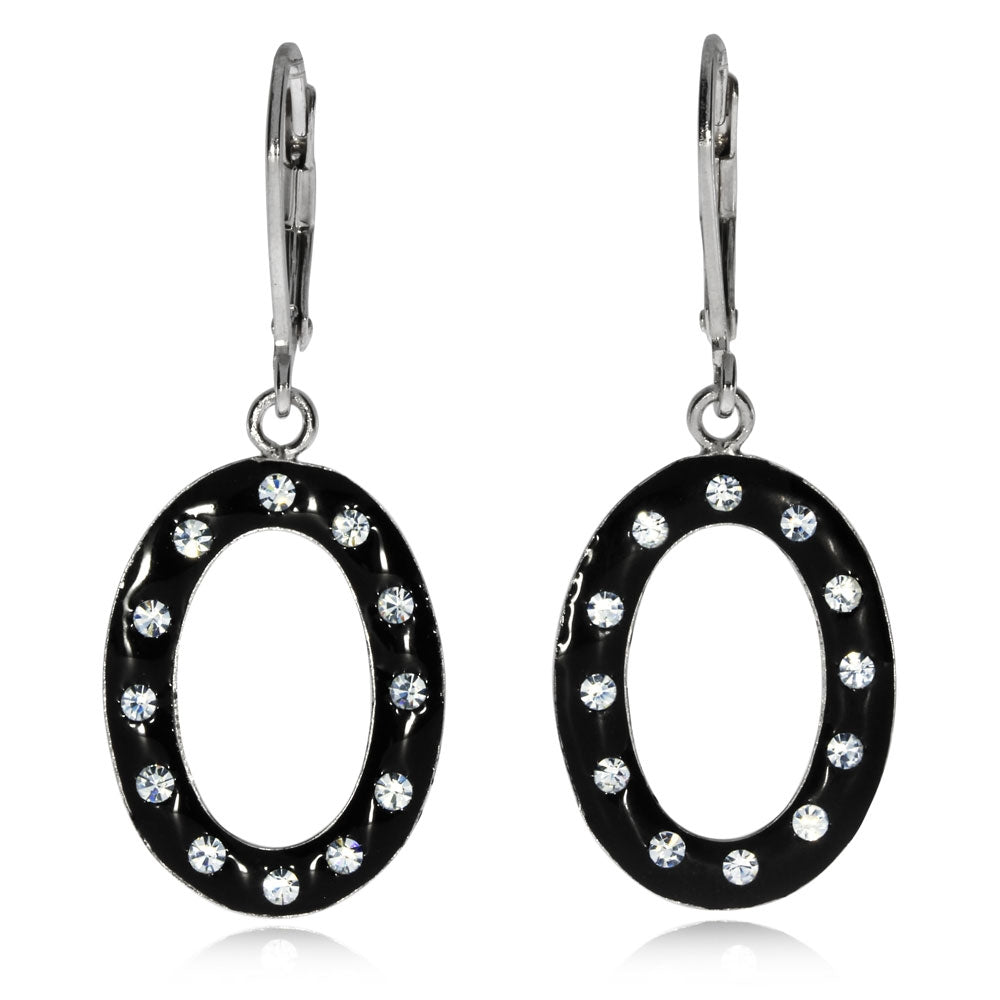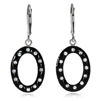 Krásné dámské náušnice, které spojují jednoduchost a nápaditost s elegancí a moderním zpracováním. Náušnice oválného tvaru mají celou přední část černou a tmavý povrch dává skvěle vyniknout čirým Swarovski krystalům, které jsou do něj zasazené. Náušnice jsou vyrobené z lesklého a dobře odolného rhodiovaného stříbra.