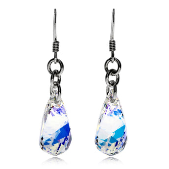 Stříbrné náušnice s krystaly Swarovski - Čirá kapka s duhovými odlesky