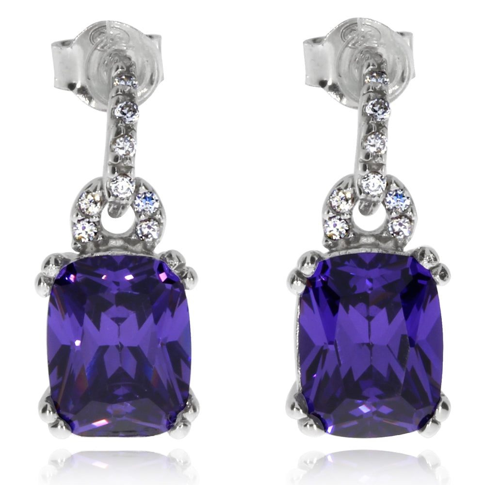 Stříbrné náušnice se zirkony (kubická zirkonie) - Obdélníky ve fialové