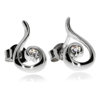 Jemné a velice krásně zpracované náušnice se skvěle hodí pro dámy se zálibou v nepříliš nápadných a elegantních špercích. Nesou působivě jednoduchý spirálovitý motiv, v jehož středu je zasazený třpytivý syntetický zirkon (cubic zirconia). Náušnice jsou vyrobené z lesklého a dobře odolného rhodiovaného stříbra.