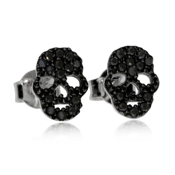 Stříbrné náušnice s černými zirkony (kubická zirkonie)- Lebky