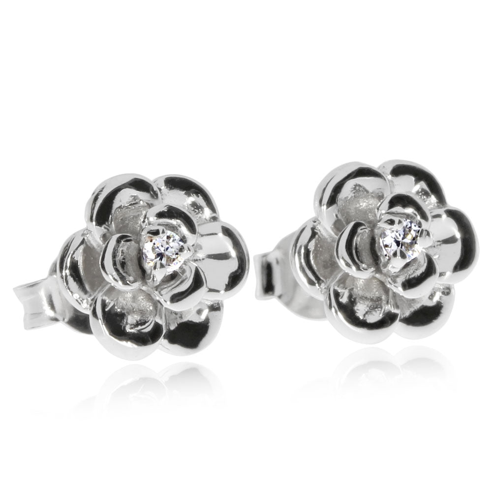Okouzlující stříbrné náušnice plné jemnosti a působivého půvabu se skvěle hodí pro romantické ženy a mladé dívky. Jednoduchý květinový motiv je doplněný středovým syntetickým zirkonem (cubic zirconia), který se nádherně třpytí. Náušnice jsou vyrobené z dobře odolného a lesklého rhodiovaného stříbra.