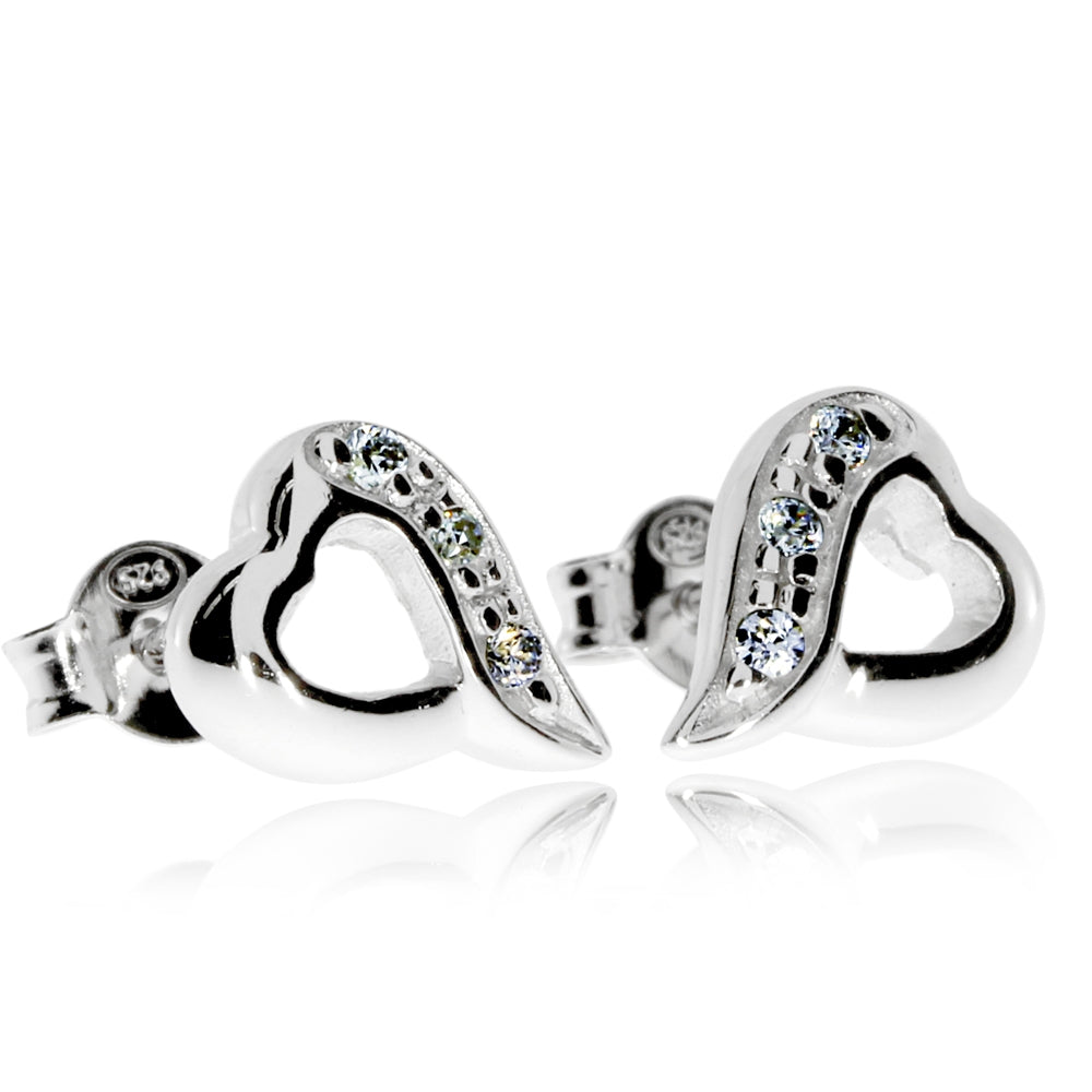 Stříbrné náušnice se zirkony (kubická zirkonie) - malá srdíčka