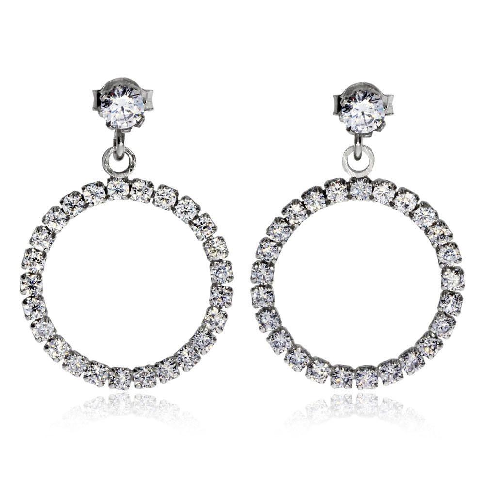 Stříbrné náušnice se zirkony (kubická zirkonie) - Třpytivý kruh