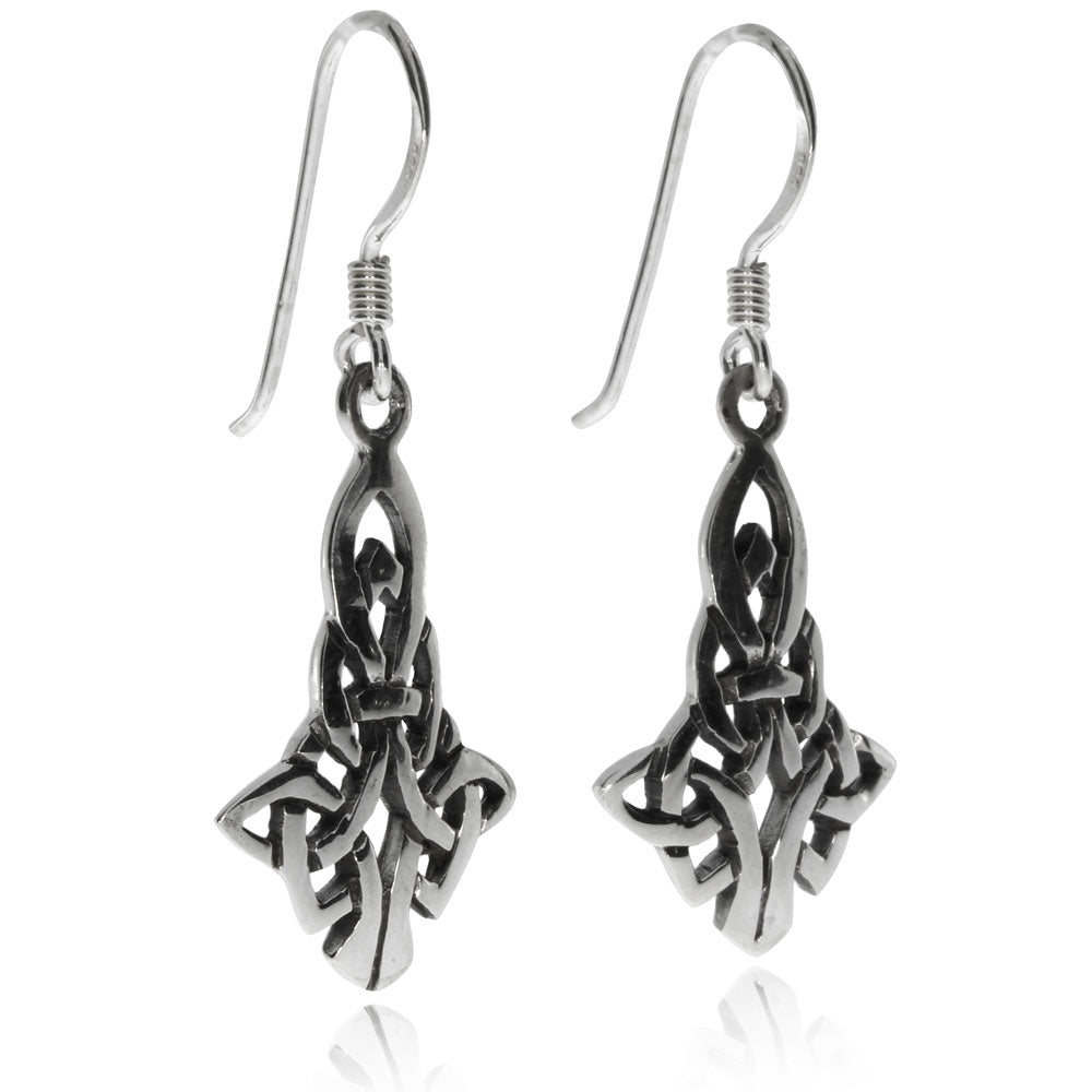 Velice originální a krásně zpracované dámské náušnice nesou visací ozdobu ve tvaru keltského symbolu Uzel Země. Ten představuje Matku Zemi a vyjadřuje spojení s přírodou. V dávných dobách ho Keltové používali jako ochranný amulet proti zlým silám. Náušnice jsou vyrobené ve starostříbrné povrchové úpravě.