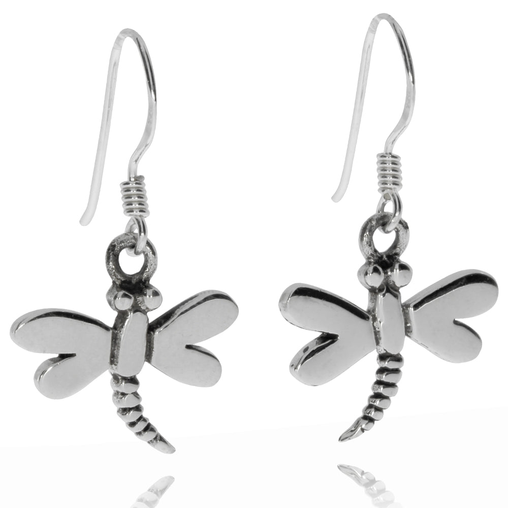 Nápadité a půvabně romantické dámské visací náušnice s jednoduchým, avšak líbezně zpracovaným motivem vážek. Ty jsou pro svou tajuplnost a krásu používané jako symbol proměny a naděje. Drobné náušnice na háček jsou vyrobené z pěkně lesklého leštěného stříbra.