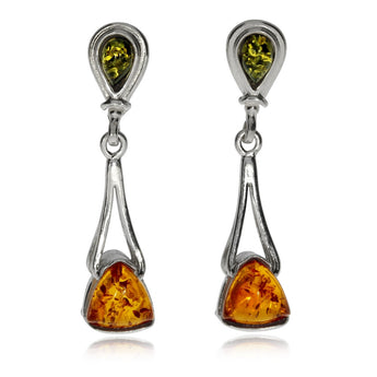 Stříbrné náušnice visací se dvěma různobarevnými jantary