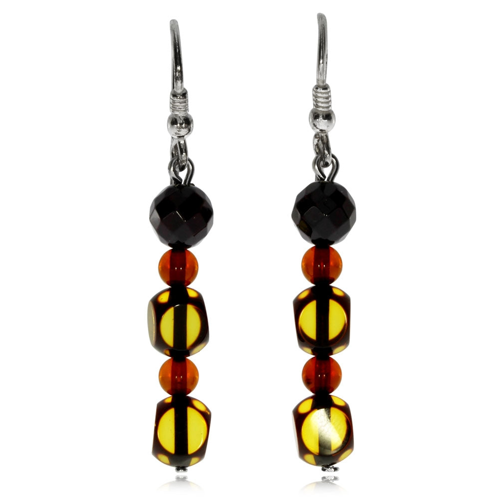 Stříbrné náušnice visací s jantarem - kuličky ve třech barvách