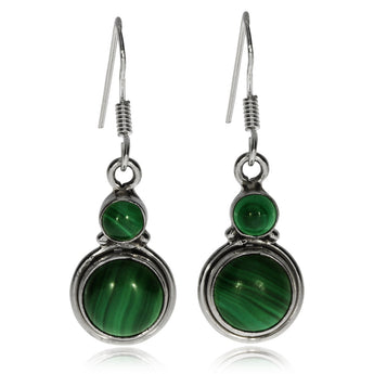 Stříbrné visací náušnice s malachitem - menší a větší kruh