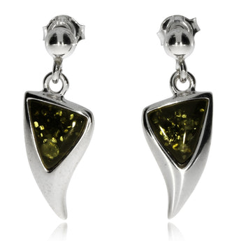 Stříbrné náušnice se zeleným jantarem v trojúhleníku