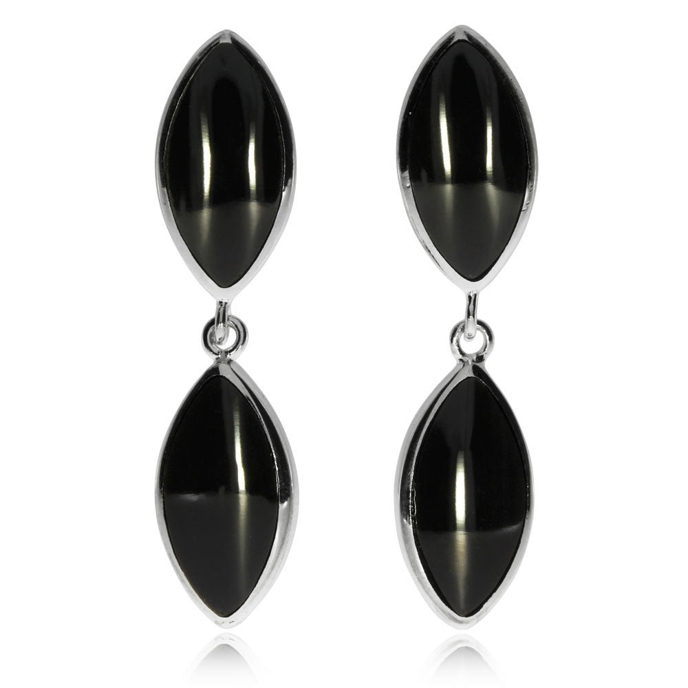 Stříbrné náušnice visací s onyxem - dvě markýzy
