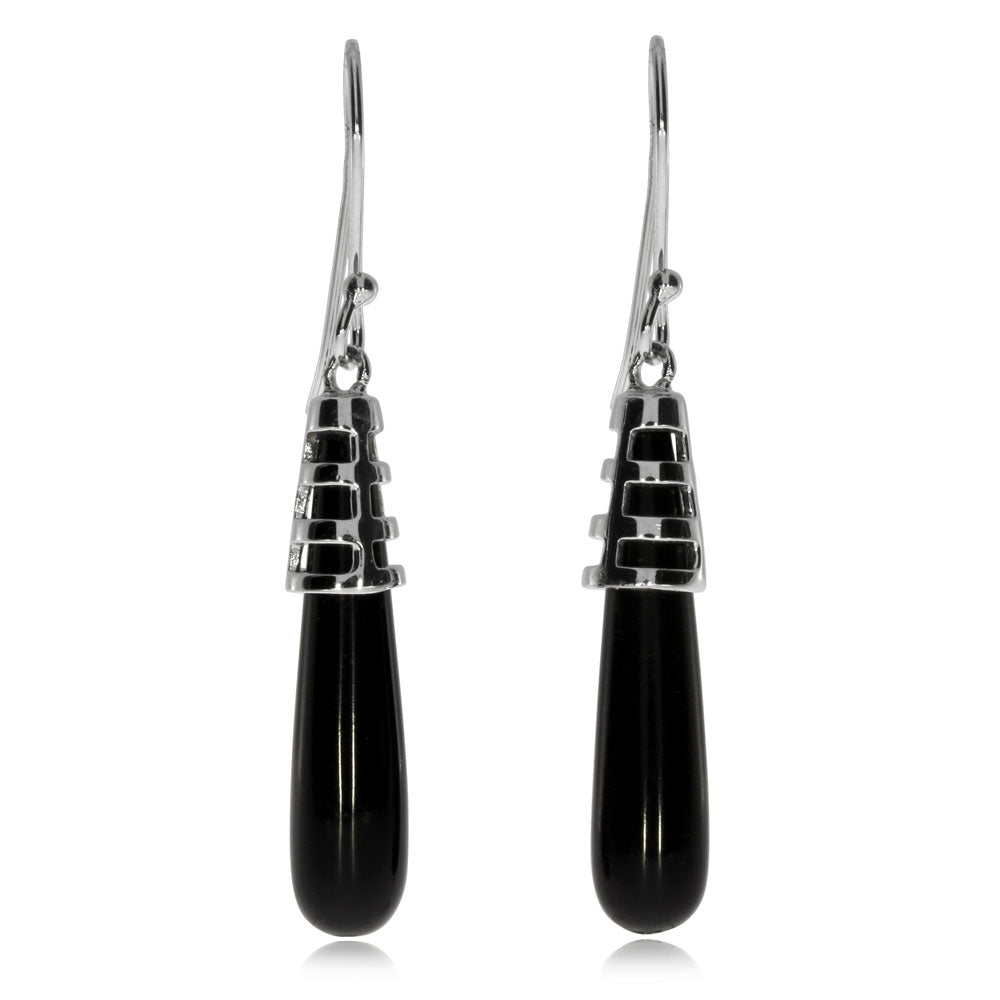 Stříbrné visací náušnice s černým emailem - protáhlé kapky