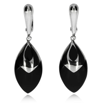Úchvatné dámské náušnice, které v sobě pozoruhodně spojují několik konstrastních prvků. Čisté linie se spojují v celkový vypouklý tvar a plochy zářivého rhodiovaného stříbra jsou doplněné černými emailovými plochami. Vzniká tak nápaditá elegance, která potěší každou ženu s vlastním osobitým stylem.