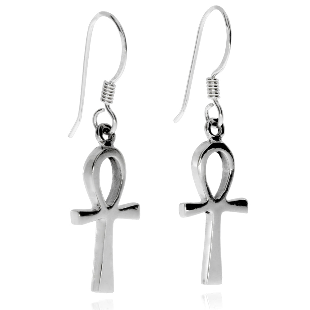 Stříbrné visací náušnice, které nesou ozdobu ve tvaru nilského kříže. Nilský kříž nebo také Ankh byl mocným egyptským symbolem, který představoval vycházející slunce, spojení mužského a ženského principu. Náušnice jsou vyrobené z kvalitního leštěného stříbra.