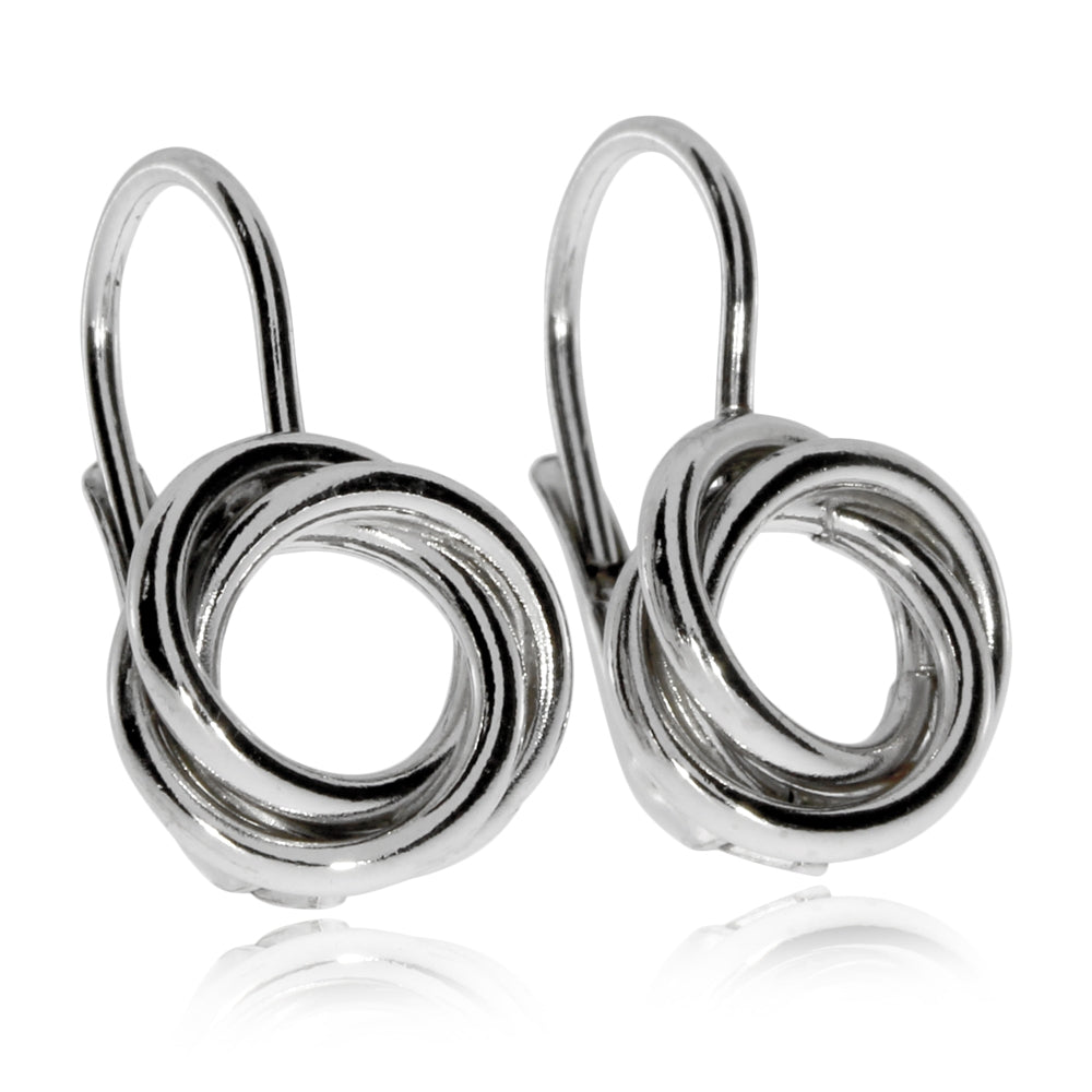 Elegantně zpracované dámské náušnice, které se hodí pro různé příležitosti i k různým stylům. Jednoduché náušnice se budou skvěle doplňovat dalšími šperky a jemně podtrhnou dámský půvab. Jsou vyrobené z dobře odolného a vysoce lesklého rhodiovaného stříbra a zdobí je několikrát ovinutá kruhová linie, která vytváří uzlík.