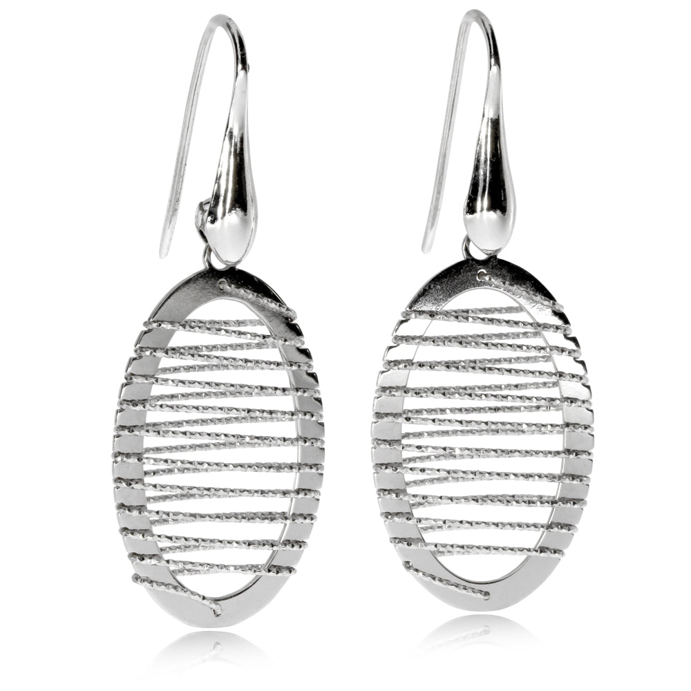 Stříbrné visací náušnice proplétané stříbrnou nitkou oválného tvaru