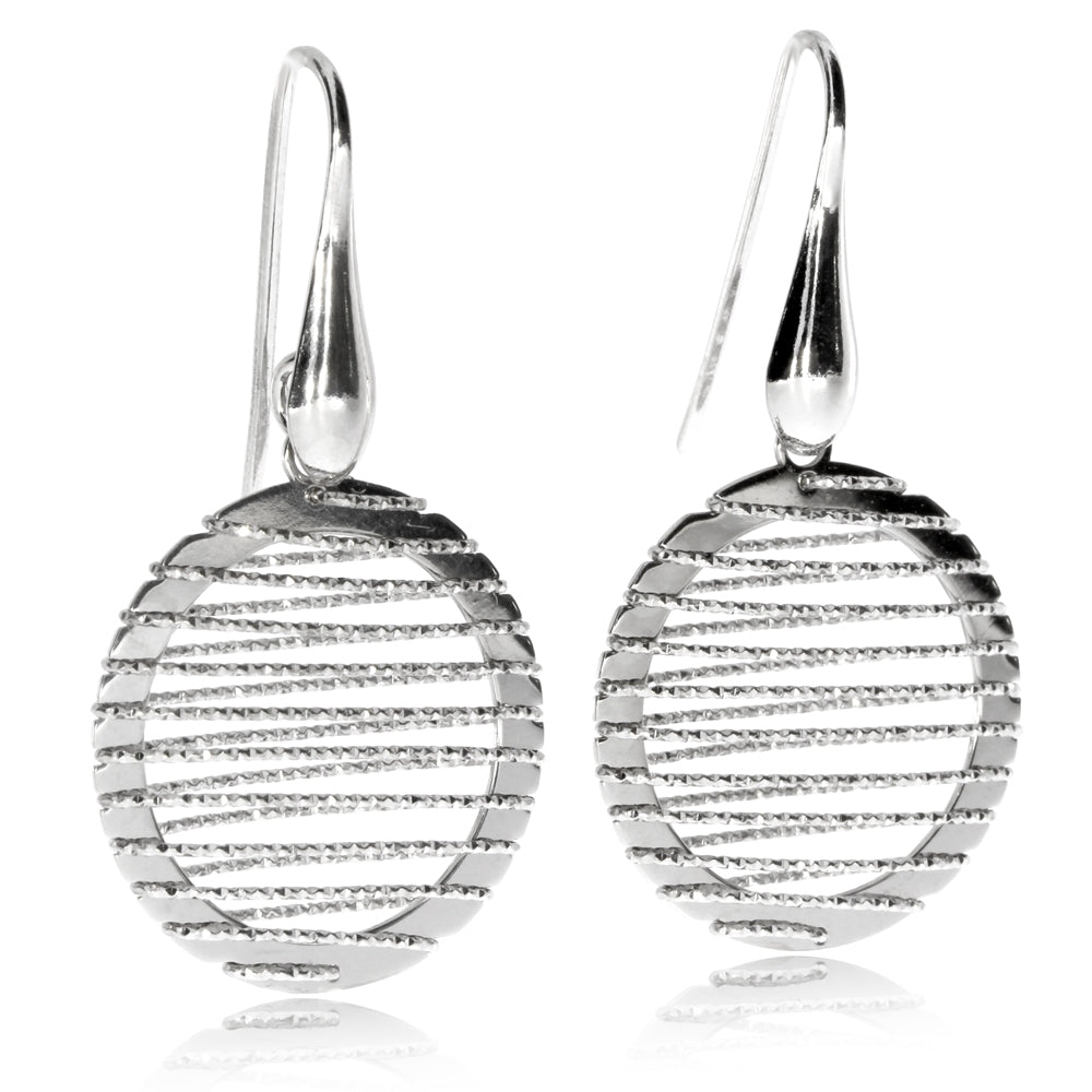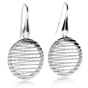 Stříbrné visací náušnice proplétané stříbrnou nitkou ve varu kola