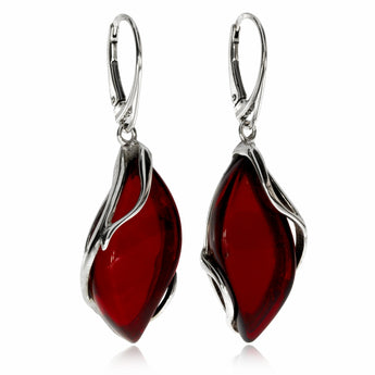 Střírbrné visací náušnice s jantarem ve tvaru markýzy
