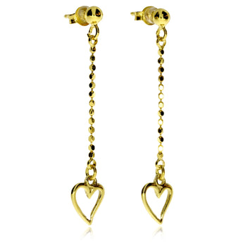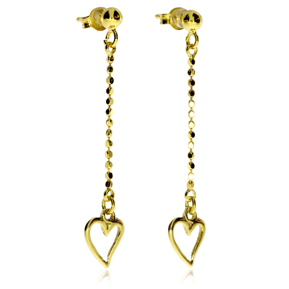 Stříbrné visací náušnice se srdci na konci řetízku ve zlaté barvě