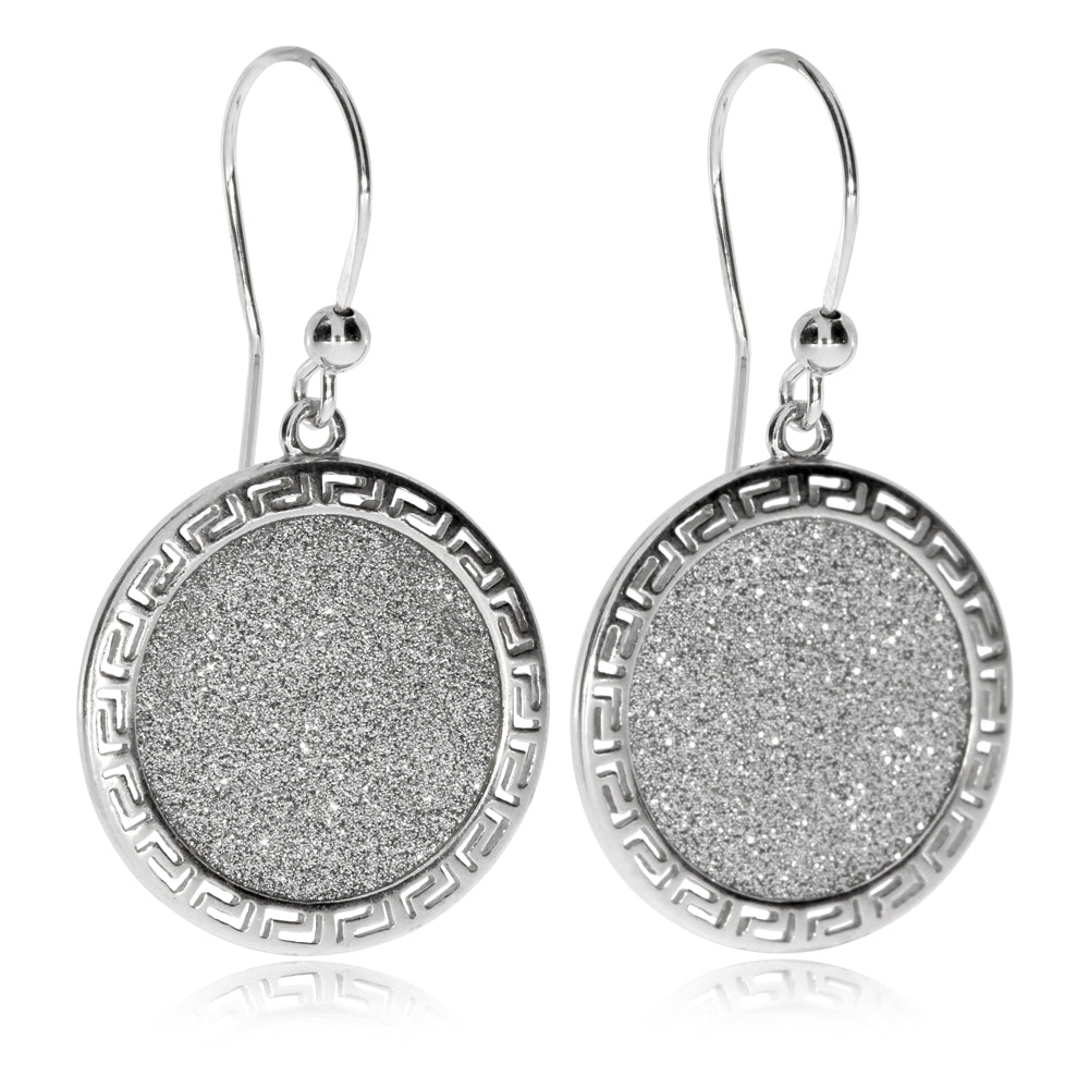 Stříbrné visací náušnice - Tvarovaná kola s řeckými motivy