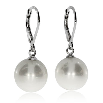 Stříbrné visací náušnice s perlou (perla syntetická) kulatého tvaru