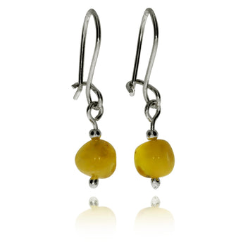 Jednoduché a zároveň velice poutavé a netradiční dámské náušnice se budou skvěle hodit pro ženy a dívky, které mají rády nepříliš vyrazné, ale nápadité šperky se svébytným půvabem. Náušnice jsou vyrobené z leštěného stříbra a zdobí je dokulata opracované kousky žlutého přírodního jantaru.