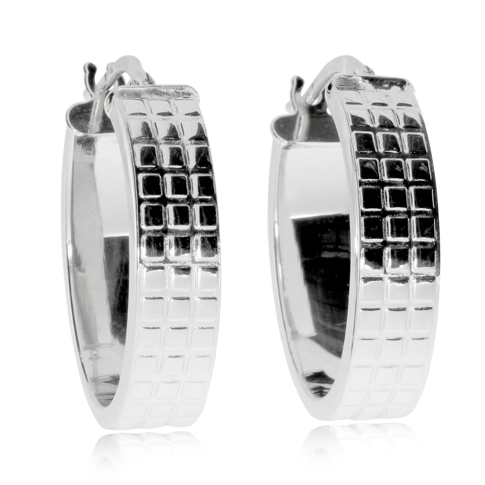 Stříbrné náušnice kruhy se čtverečky po obvodu