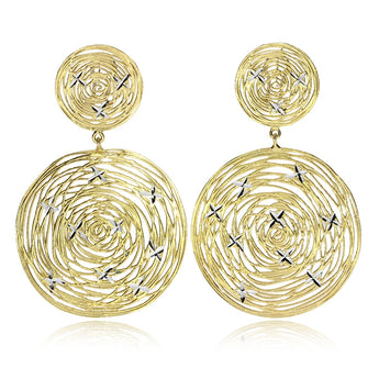 Stříbrné náušnice pozlacené - Efektní kruhové zámotky s výbrusy