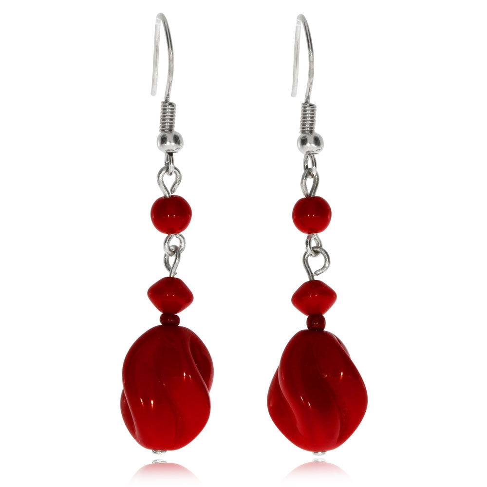 Skleněné bižuterní náušnice - Červené tvarované korálky