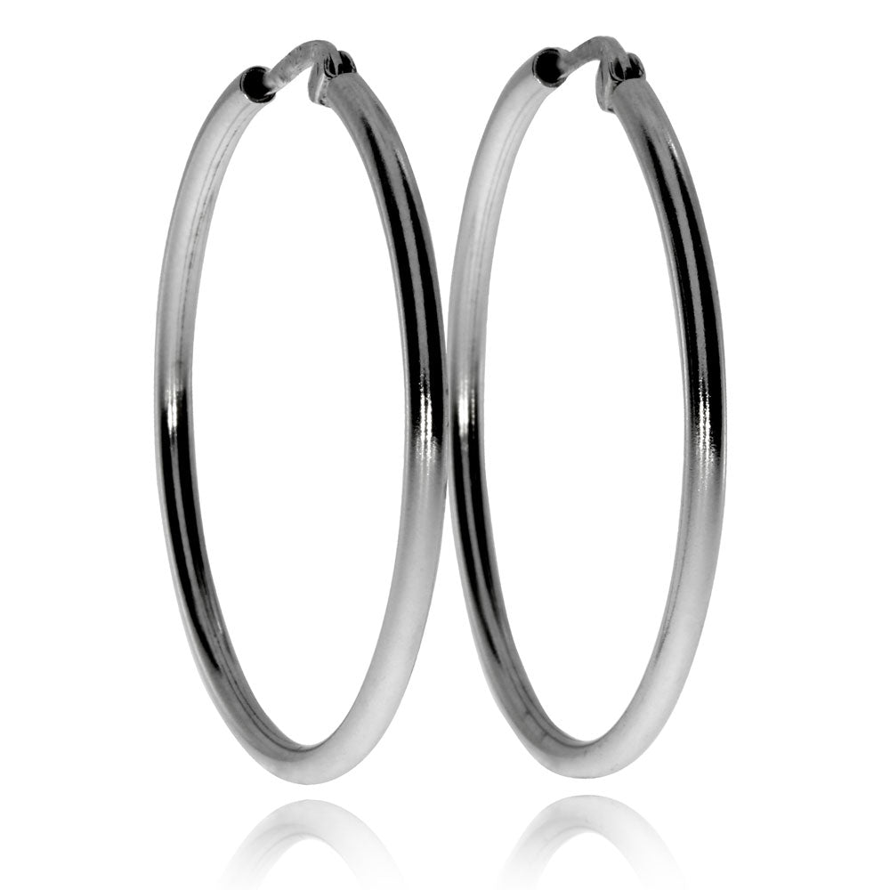 Náušnice typu kruhy patří k velice oblíbeným dámským šperkům. Působí neobvykle, jsou výrazné, a nehodí se proto pro ženy a dívky, které mají raději umírněné šperky. Tyto středně velké kruhy jsou vyrobené jsou ze stříbra s vrstvou odolného a krásně lesklého rhodia.