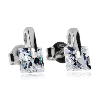 Stříbrné rhodiované náušnice se zirkonem (cubic zirconia) ve tvaru čtverce