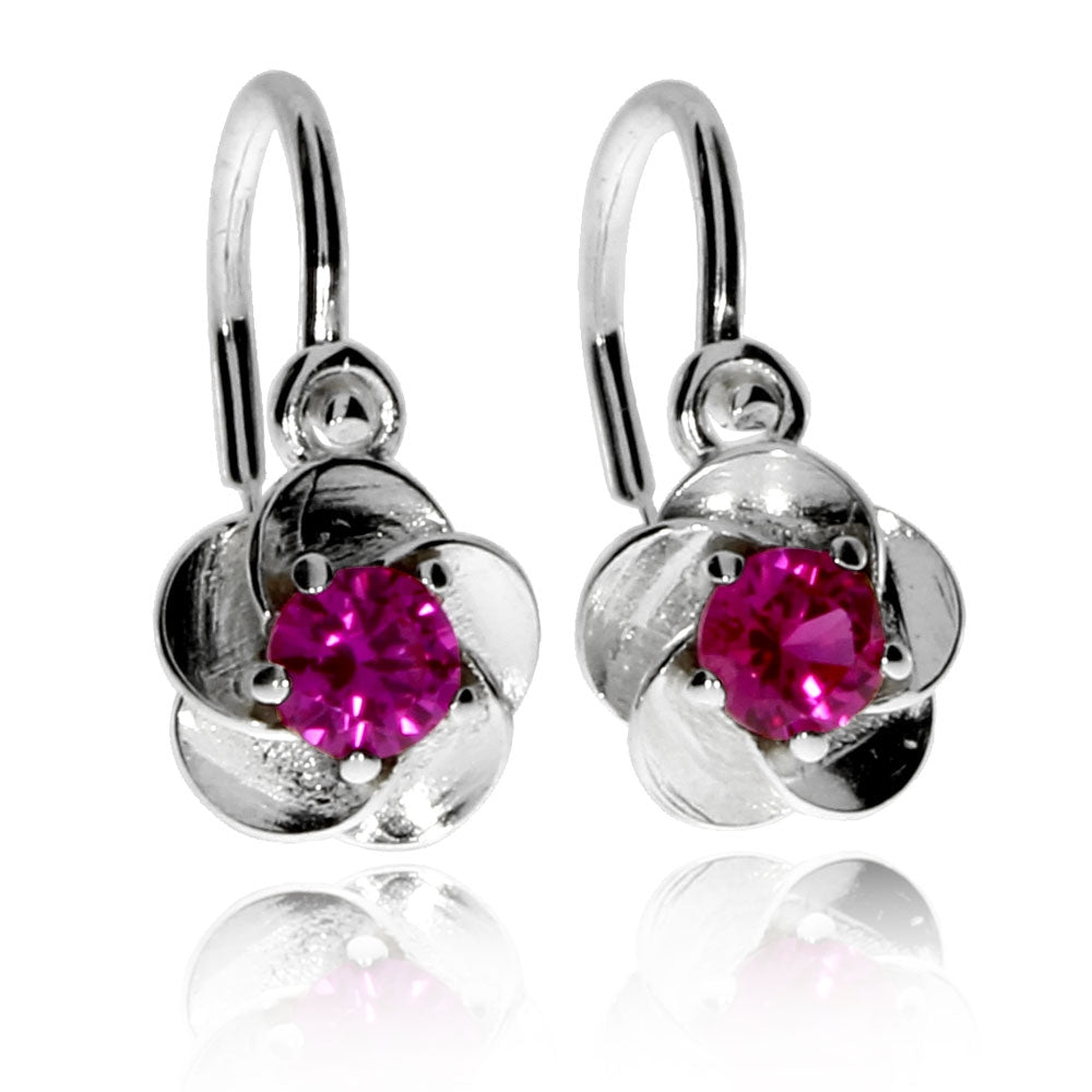 Dětské stříbrné náušnice kytička s tmavě růžovým křišťálem