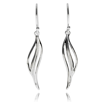Chybí vám ve výbavě jednoduchý a zároveň slušivý a univerzální šperk? Elegantní visací dámské náušnice ve tvaru zjednodušených lístků jsou právě takové.Tvoří je tři jednoduché hladné linie. Zdůrazní vaši ženskost a přesto budou působit decentně. Jsou vyrobené z rhodiovaného stříbra, které jim poskytuje větší lesk i odolnost.