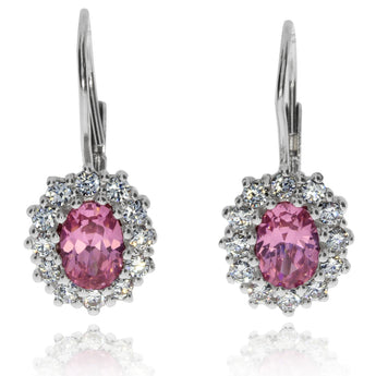 Stříbrné náušnice s růžovým středovým zirkonem (kubická zirkonie) - Ovál