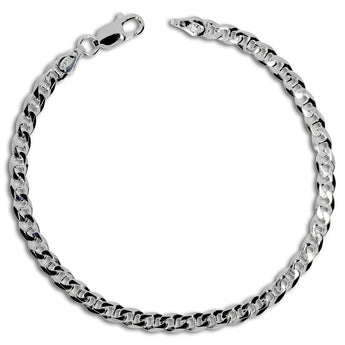Originální stříbrný náramek s jednoduchým a nápaditým designem, který se svým zpracováním hodí pro muže i ženy. Náramek je složený z dílků v podobě dvojitých ok. Je vyrobený ze zářivého leštěného stříbra a bude se dobře kombinovat s dalšími stříbrnými šperky.
