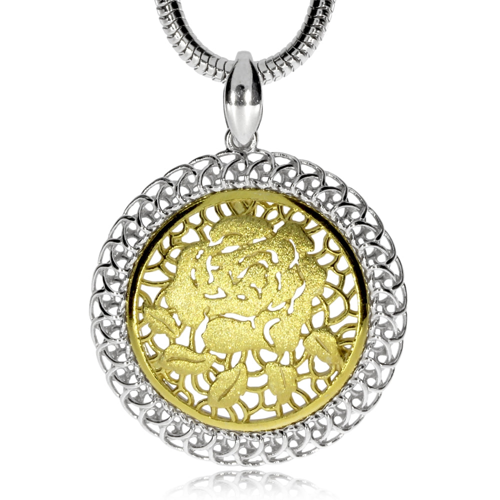 Stříbrný přívěsek se zlacenou růží uprostřed