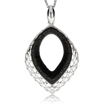 Stříbrný přívěsek ve tvaru lístku s černou konturou